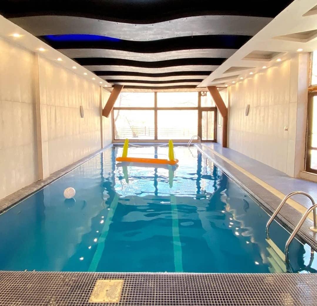 تصویه استخر گالوانیزه و اوزون تصویه دوگانه ۲۴ ساعته و هر ماه اسید شویی کامل انجام میشود کلر زن خطی افزودن کات کبود و آزمایش سختی آب هر هفته آب ویلا هر ماه کامل تعویض میگردد