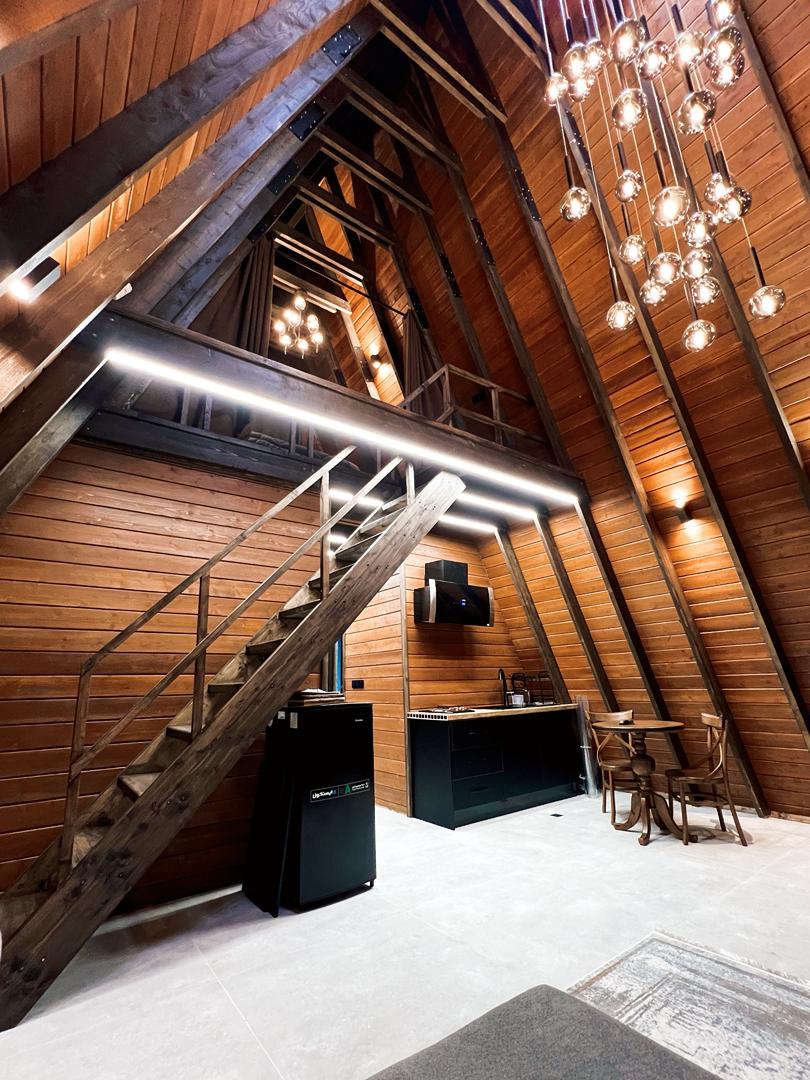 طراحی کلبه به صورتی است که در طبقه اول دارای پذیرایی، آشپزخانه، یک اتاق خواب، حمام با سرویس ایرانی و فرنگی می باشد و در طبقه دوم یک اتاق خواب به صورت نیم طبقه و همینطور تراس قرار دارد.