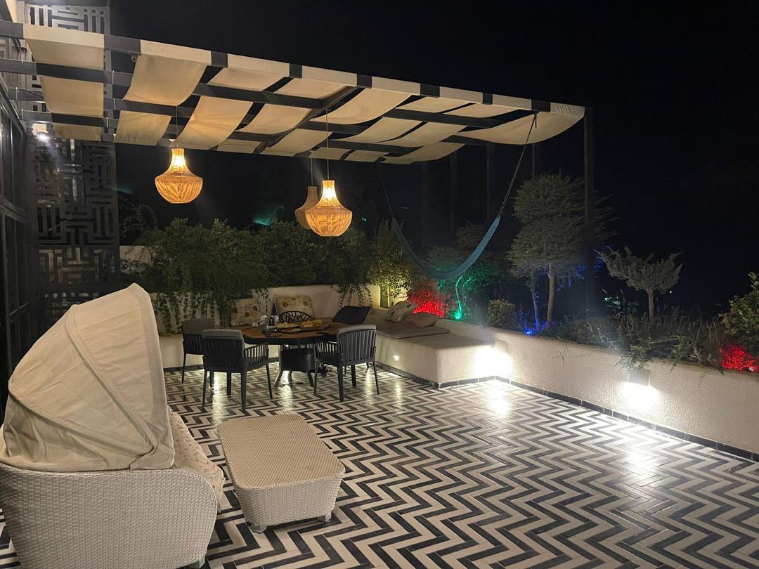 ۲) تراس بزرگ مبله با منظره کوهستانی.
