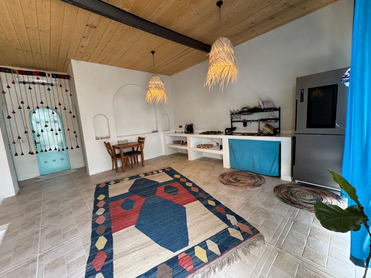 آشپزخانه مجهز با یخچال، گاز، سینک، کتری برقی و قهوه ساز