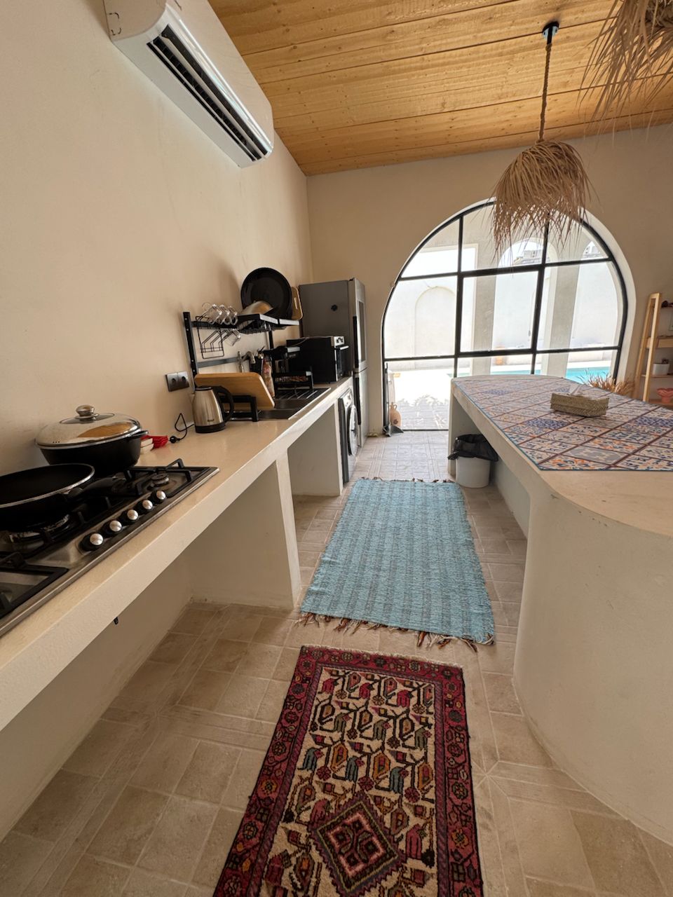 آشپزخانه مجهز به یخچال، گاز، سینک و کتری برقی، فر و ماشین لباسشویی